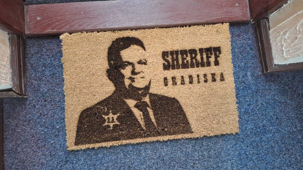 Centralnom KUD-u „Lepa Radić“ uvden je novi paket sankcija od strane gradonačelnika Gradiške Zorana Adžiča. Predsjednik CKUD-a Davor Simišić je na simboličan način pokazao šta misli o ovakvom odnosu gradonačlenika. Ispred svoje kancelarije je stavio otirač za noge sa Adžićevim likom. Suština ovog neuobičajenog čina je bila suprostavljanje bahatom i nenormalnom ponašanju prvog čovjeka Gradiške protiv jednog od najozbiljnijih i najaktivnijih udruženja u ovom gradu.